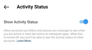 Activity Status on Instagram allows accounts you follow and anyone you message to see you are active or were last active on the Instagram app.