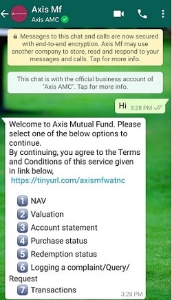 Now For example you want to Know Axis MF Account Statement then in WhatsApp Chat just type 3