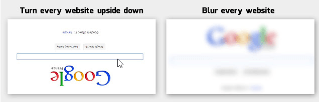 There is funny chrome plugin available where you can goof up your co-workers chrome browser by installing the plugin, and whenever they visit any website their browser window will change based on the setting you made like rotate all the images on the webpage, flip the website, change the colors etc.,