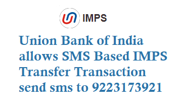Union Bank of India allows SMS Based IMPS 9223173921 Transfer Transaction